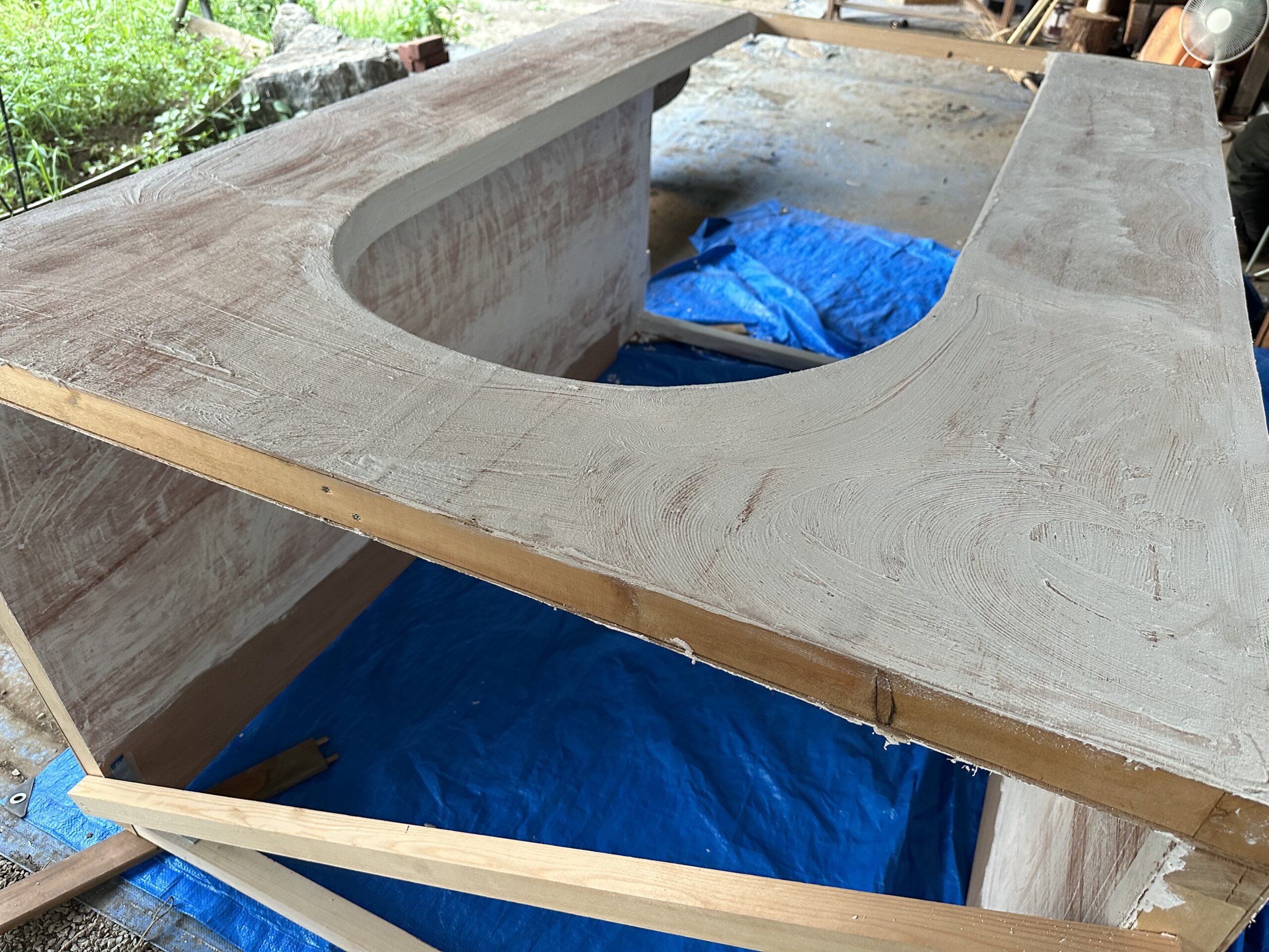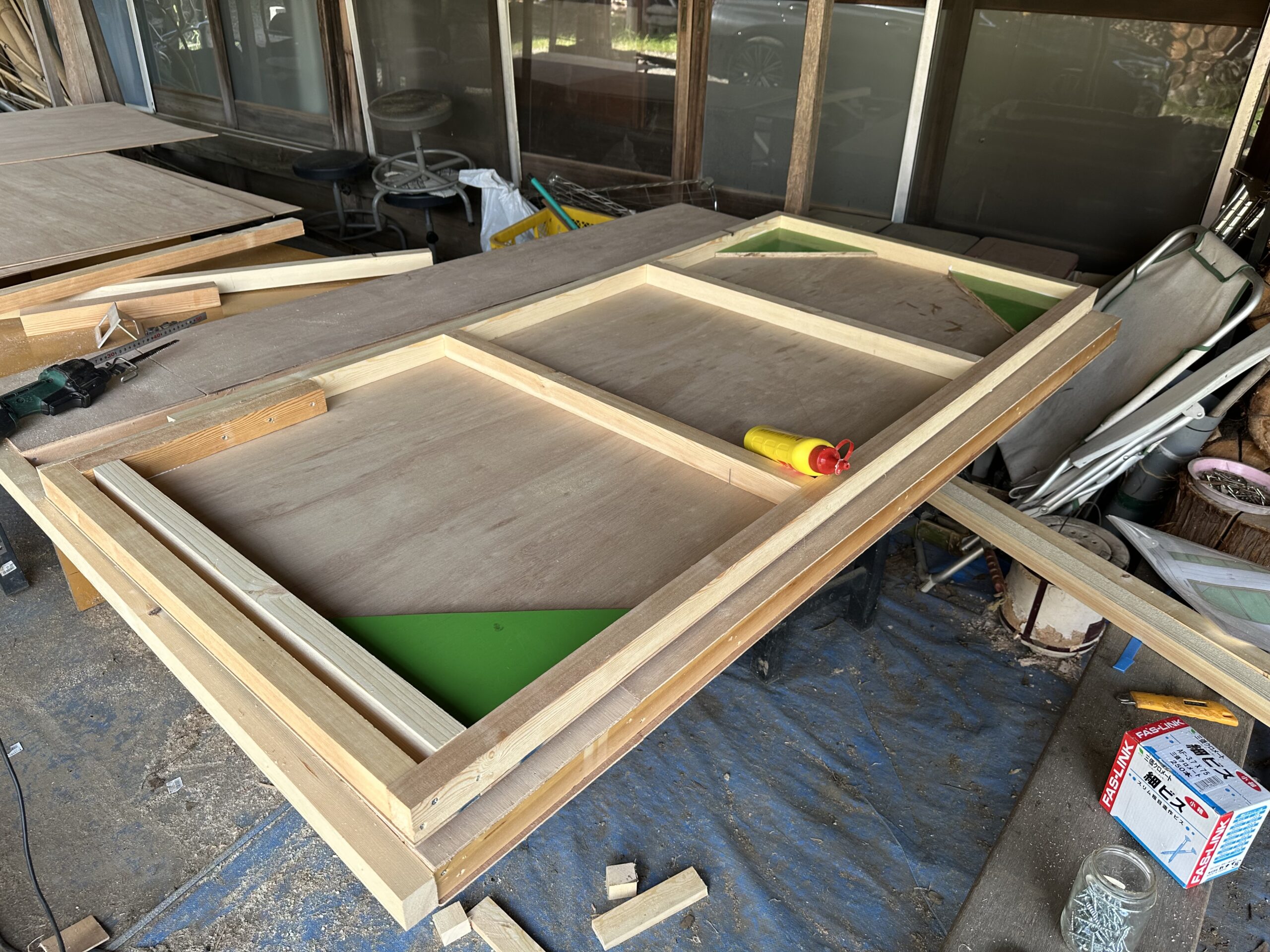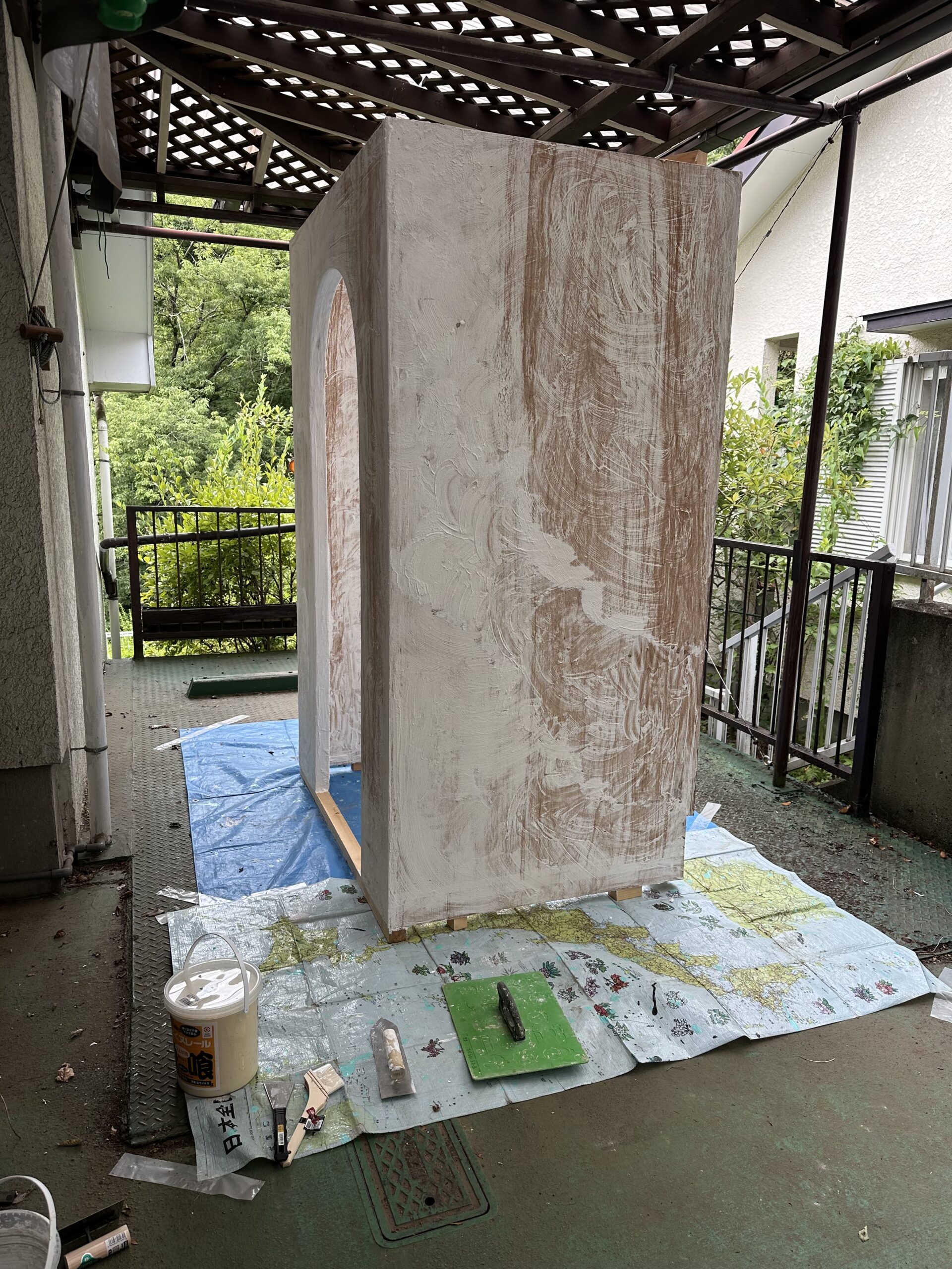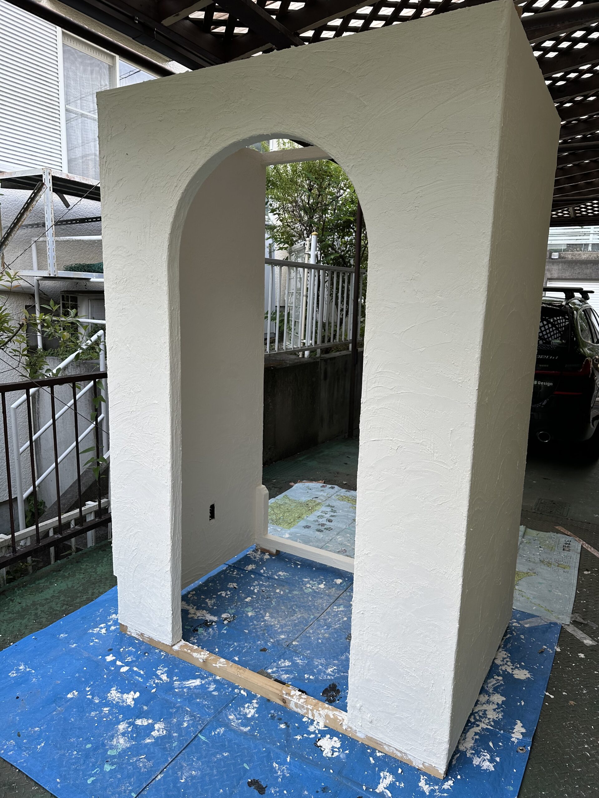 ヒーリングブース 2025年9月20日 最終更新日時 : 2025年11月20日 IKOYA 自然素材で作る「ヒーリングブース」の制作依頼を受けて頑張ってみた。 前面をつくる軸組ベースにベニヤ板を下地に壁面をつくる 側面をつくる補強用三角板を四隅に 組み立てる形状維持用の追加ジグをつけて組み立て 下地仕上げ角の面取りやバリ取りなど 下地塗りベニヤ板との密着性を良くするために下地塗りを行う 仕上げ塗り漆喰コテ仕上げ カーテンレールの取り付け必要部品の取り付け